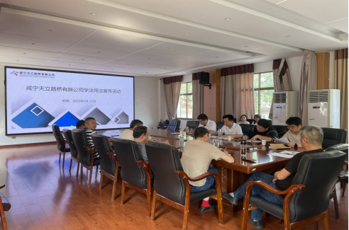 2025年5月27日,為提升職工學法用法意識,響應全區“民法典宣傳月”活動號召,咸寧天立路橋有限公司組織全體職工開展 "民法典進企業" 專題學習,通過政策傳達、案例警示、法律解讀及工作部署,推動民法典在企業管理中落地應用。
